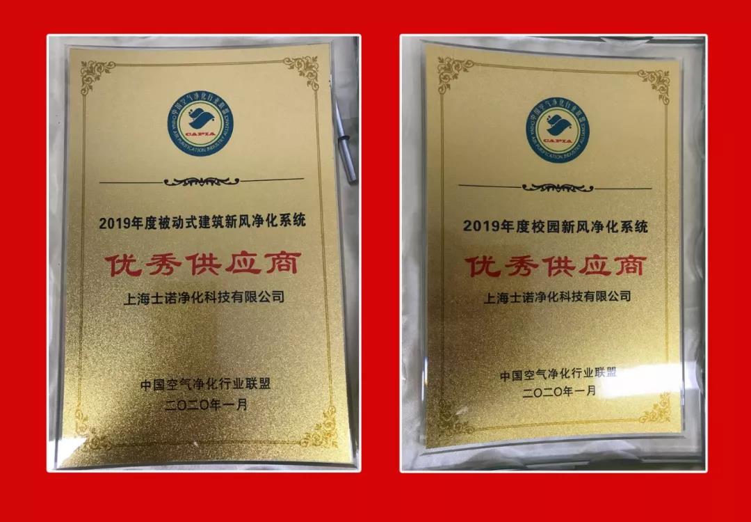 士諾榮獲2019年度被動式建筑新風(fēng)凈化系統(tǒng)和校園新風(fēng)凈化系統(tǒng)“優(yōu)秀供應(yīng)商”榮譽(yù)稱號